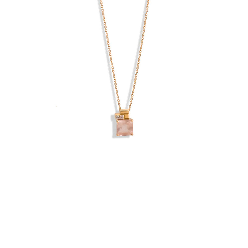 ذهب أصفر عيار 18 (3.293 جرام)، مرصع بالألماس درجة ڤي اس، اللون جي (0.06 قيراط)، وروز كوارتز (0.54 جرام) تقريبًا.